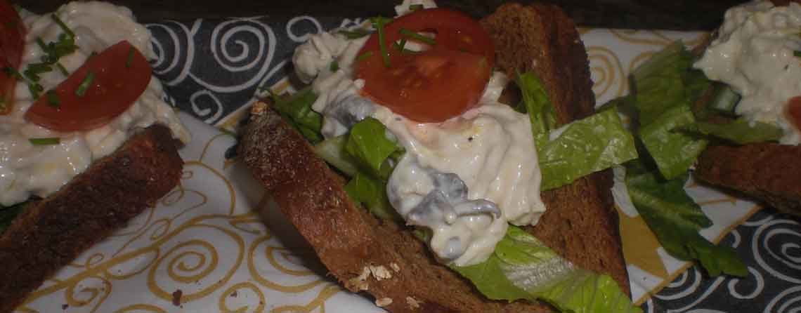 Kyllingesalat i rugbrødsfriller kunne godt være erstatningen for de – også lækre – høns i asparges i tarteletter. En anderledes måde at servere/anrette på, som bestemt gav stor opmærksomhed, da vi præsenterede den for venner og familie.